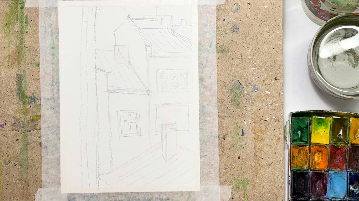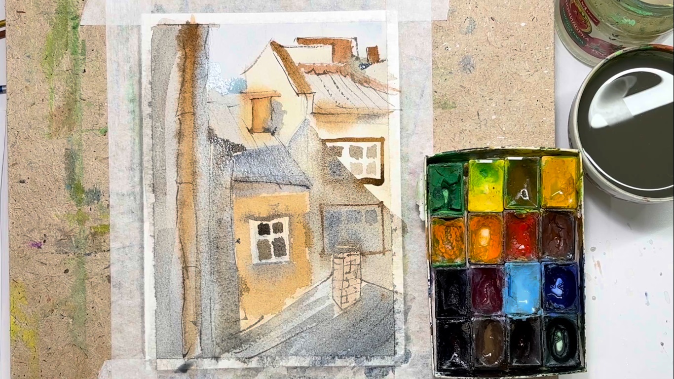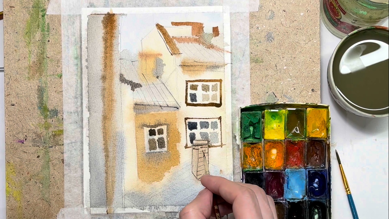 Мини-курс по акварели. Атмосферный дворик старого Санкт-Петербурга. Напишем градацию света и тени.